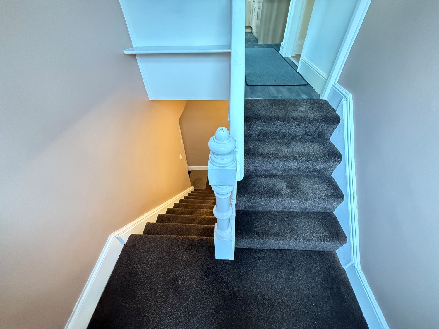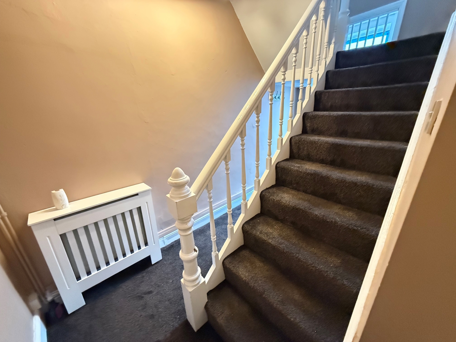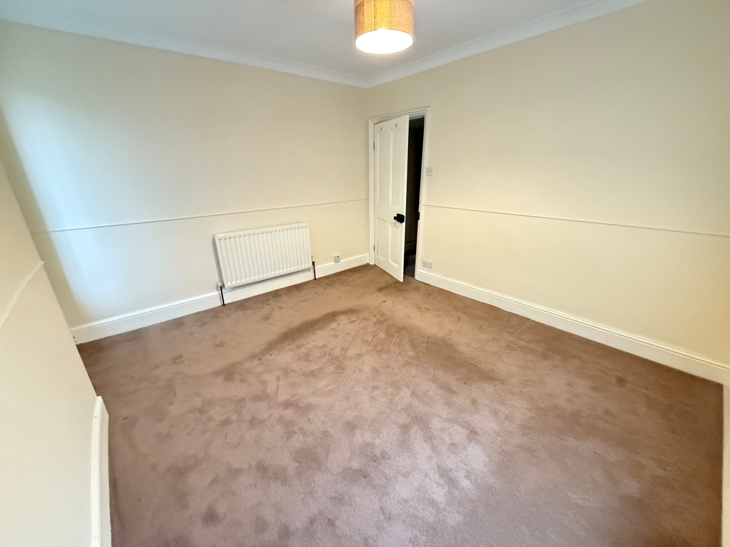 Master double bedroom with neutral decor and coving to ceiling and a central heating radiator.
