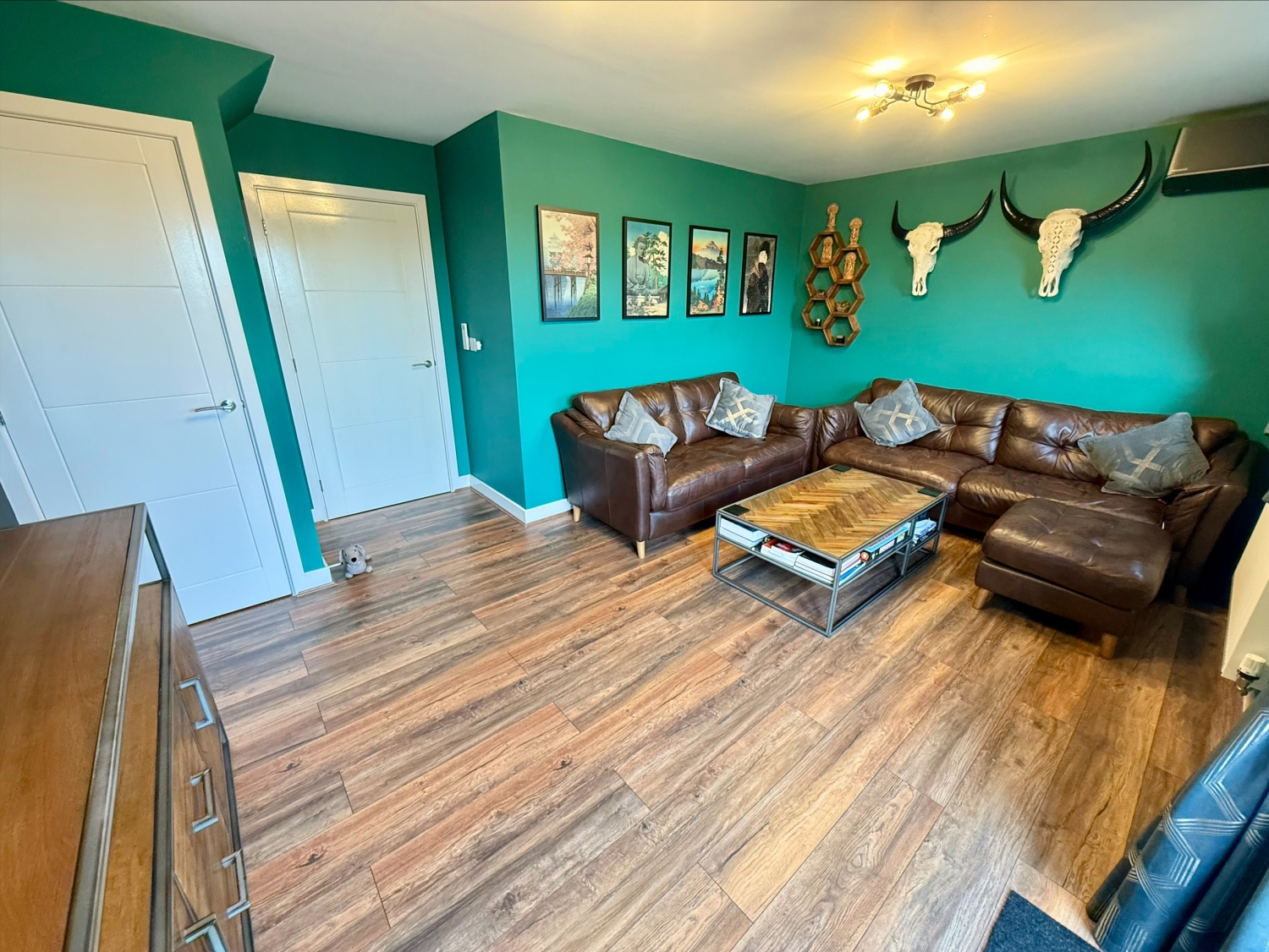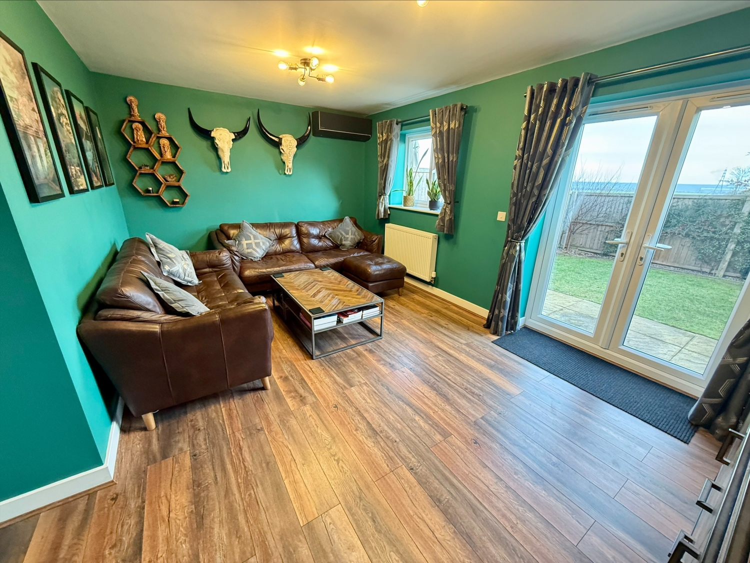 Huge living room with patio doors leading to a low maintenance, rear secure garden