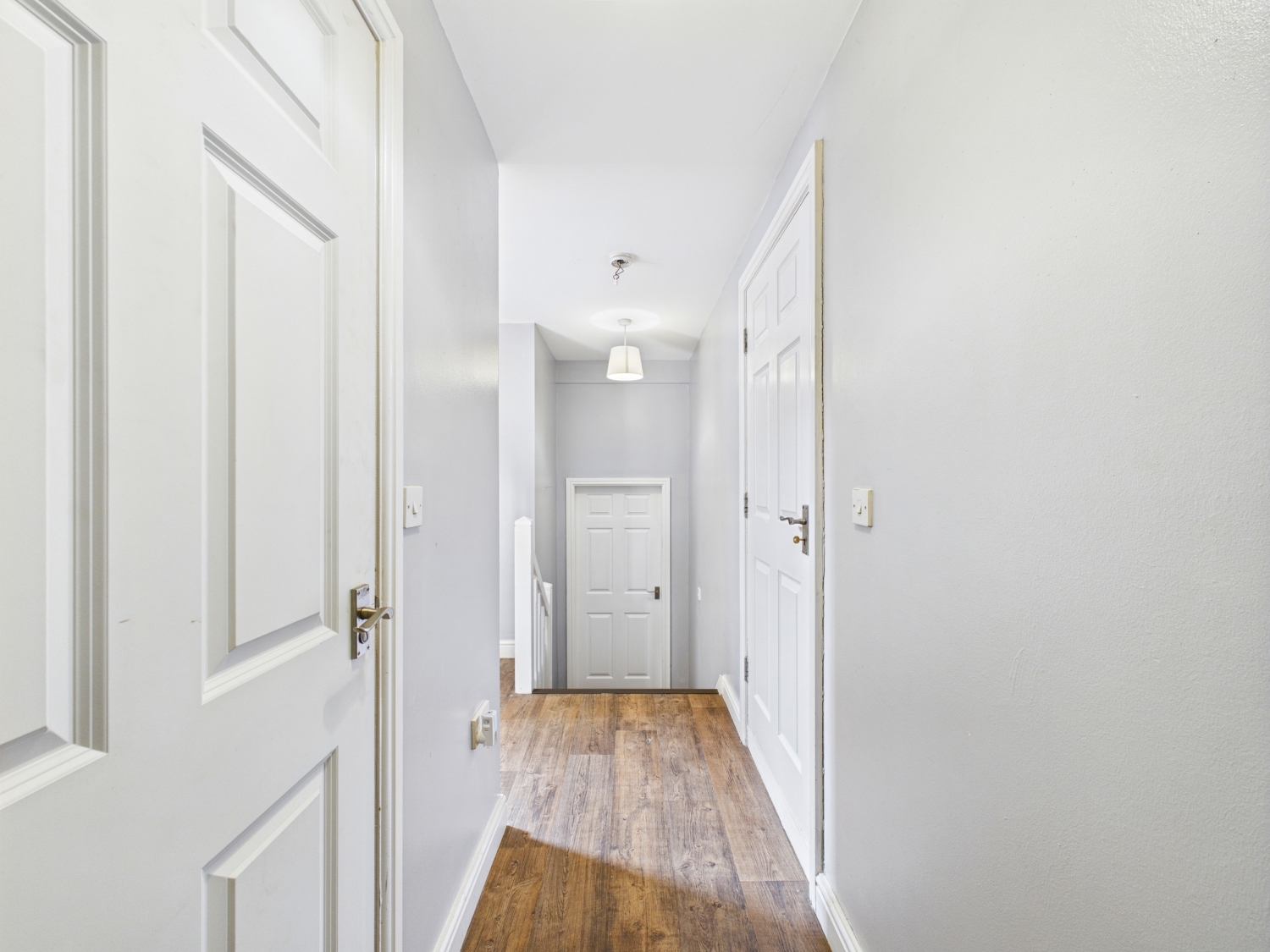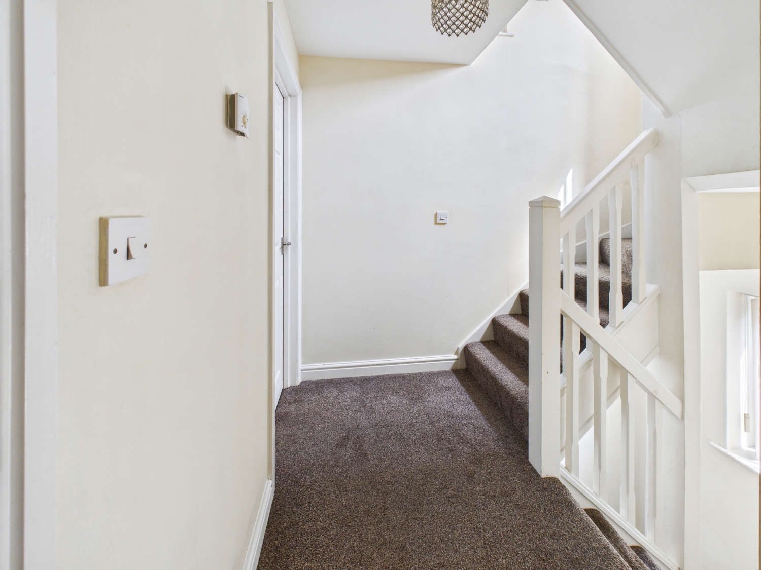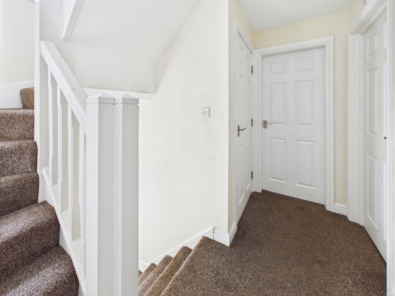 First Landing - With access doors to the lounge, bathroom and bedroom. Second staircase leads up to the second floor. Storage cupboard.