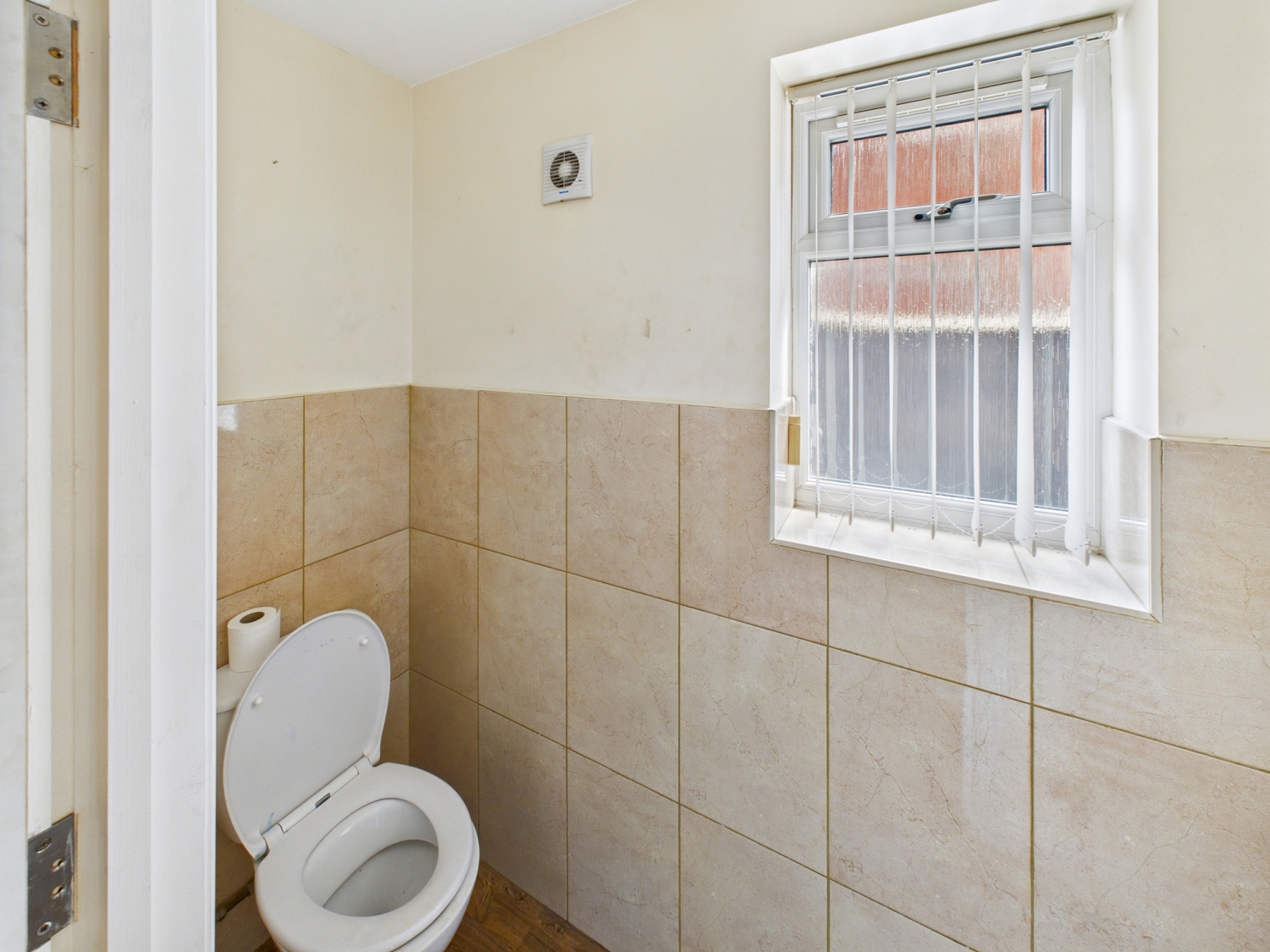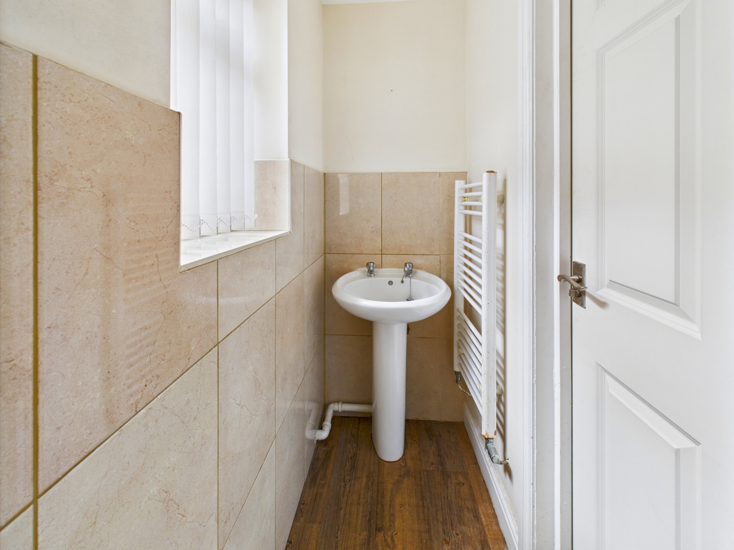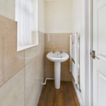 Wc - 2'8" x 7'7" - A toilet with a low-level flush, wash hand basin, a towel radiator. UPVC double glazed window to the side elevation. Tiling to the walls. Spotlights to the ceiling.